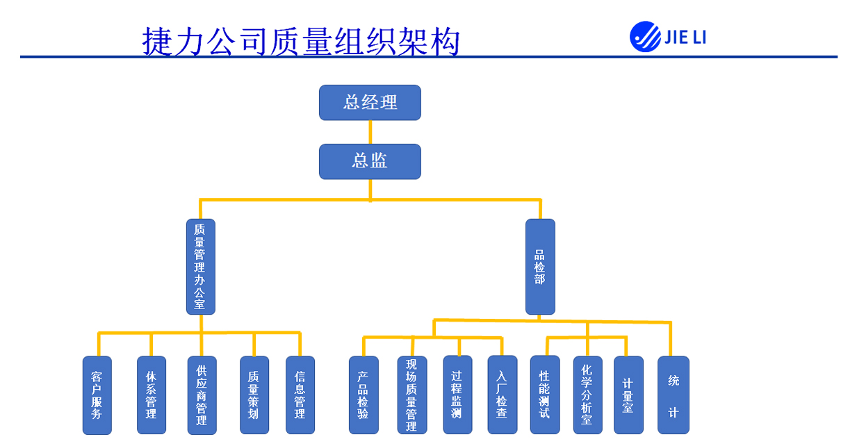 1、 公司質(zhì)量組織架構(gòu):總經(jīng)理-質(zhì)量總監(jiān)分管質(zhì)量管理辦公室和質(zhì)檢部長,職責(zé)清楚,分工明細(xì),--圖片展示;所有的質(zhì)量管理人員均為本科以上學(xué)歷,有10年以上同行工作經(jīng)驗(yàn);